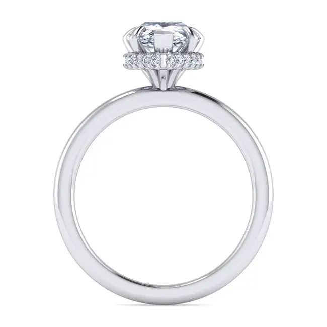 Graceful and refined, the Rainah ring is designed to highlight the beauty of a pear-shaped center stone with subtle brilliance and timeless elegance. Crafted in luminous 14K white gold, this classic design features a delicate hidden halo of lab-grown diamonds beneath the center stone, adding a touch of sparkle visible from every angle.