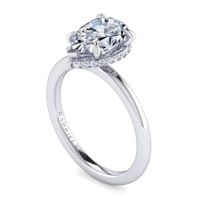 Gabriel & Co 'Rainah' 14K White Gold Hidden Halo Pear Shape Diamond Engagement R
